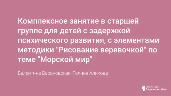 Комплексное занятие в старшей группе для детей с задержкой психического развития, с элементами методики "Рисование веревочкой" по теме "Морской мир"