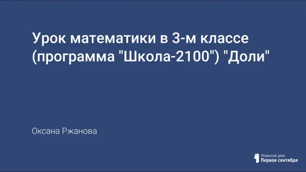 Цели урока: познакомить детей с понятием "доли"; учить читать и записывать доли; развивать внимание, память, мышление, познавательный интерес.