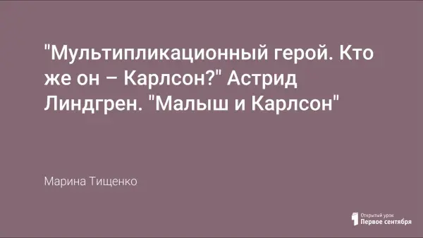 Урок призван сформировать целостное представление о мультипликационном герое, учит детей понимать и анализировать поступки и поведение героев, развивает творческие возможности и фантазию учащихся, воспитывает культуру просмотра фильмов.