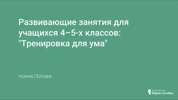 Развивающие занятия для учащихся 4–5-х классов способствуют развитию мышления и познавательной активности, творческих и коммуникативных способностей учащихся, повышают мотивацию достижения успеха.
