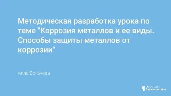 Методическая разработка урока по теме "Коррозия металлов и ее виды. Способы защиты металлов от коррозии"