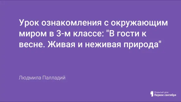 Целью данного урока является: познакомить детей с характерными признаками весны в неживой и живой природе, развивать наблюдательность; умение анализировать и делать выводы; воспитывать интерес и любовь к природе.