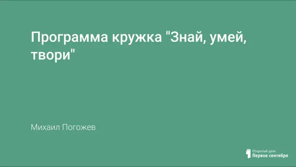 Программа кружка включает занятия по овладению технологиями обработки древесины; творческое проектирование научно-исследовательской установки, проектирование бытового макета, предмета декоративно-прикладного творчества; экскурсии на предприятия или на выставки соответствующей направленности.