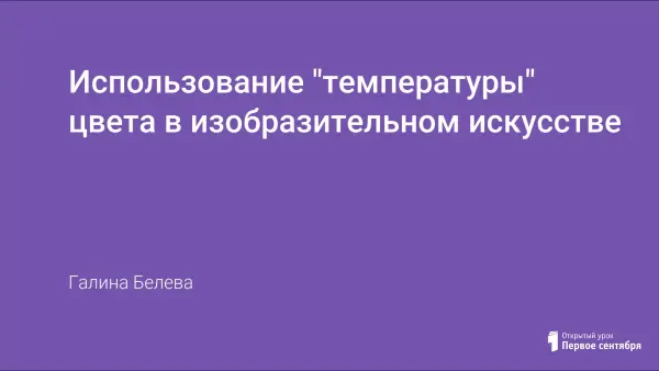 На уроке по изобразительному искусству мне бы хотелось поделиться с опытом работы по изучению основ цветоведения, пониманию и применению на практике условной "температуры" цвета. Проблема преподавания изобразительного искусства в школе в настоящее время - актуальна. Главной целью обучения я ставлю формирование коммуникативной компетенции.