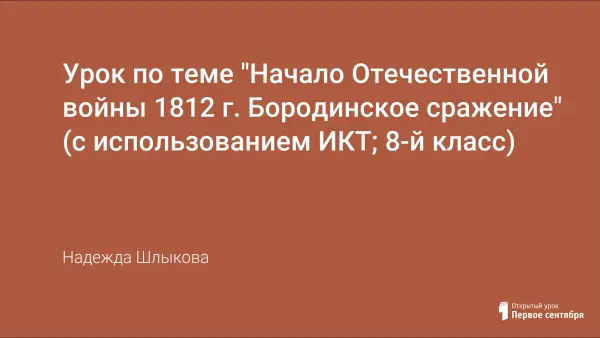 Урок по теме "Начало Отечественной войны 1812 г. Бородинское сражение" (с использованием ИКТ; 8-й класс)