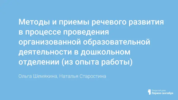 Методы и приемы речевого развития в процессе проведения организованной образовательной деятельности в дошкольном отделении (из опыта работы)