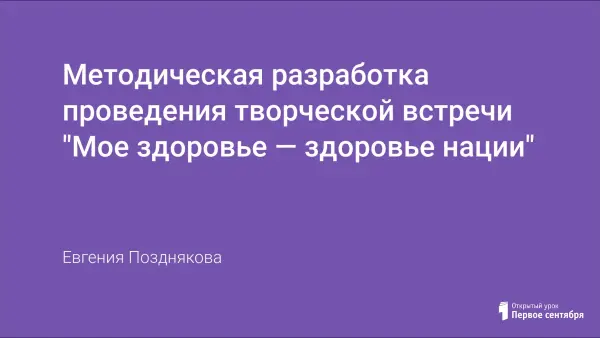 Методическая разработка проведения творческой встречи может быть использована в помощь педагогу-организатору. Творческая встреча направлена на повышение уровня информированности подростков по проблемам, связанным со здоровьем человека.