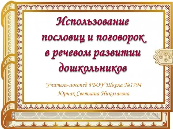 Использование пословиц и поговорок в речевом развитии дошкольников