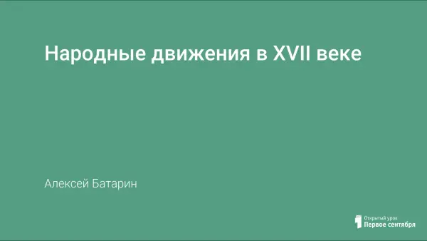 Данный комбинированный урок направлен на создание у учащихся прочных представлений о причинах, поводах, основных событиях, особенностях и результатах народных движений в XVII веке. Рассказ учителя сопровождается презентацией о Соляном бунте, Медном бунте, восстании Степана Разина и Соловецком восстании как крупнейшем движении старообрядцев.