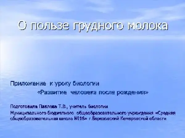 Материал расскажет школьникам о значении грудного вскармливания на первом году жизни ребенка