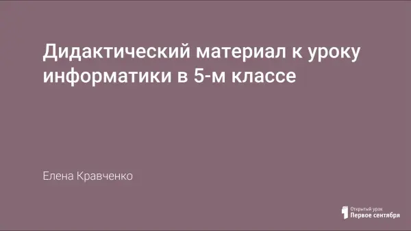 Представлен дидактический материал к уроку информатики в 5-м классе.