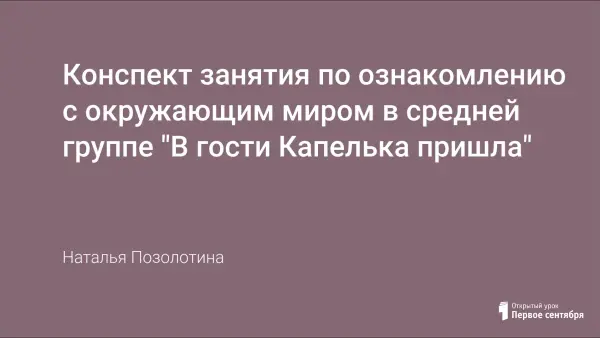 Конспект занятия по ознакомлению с окружающим миром в средней группе, направленного на развитие представлений о свойствах воды, её агрегатных состояниях (пар, вода, лёд). Освоение экспериментирования. Развитие воображения через проживание и познавательной активности у детей.