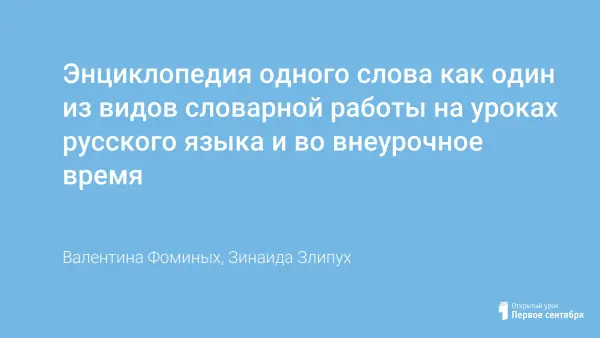 Энциклопедия одного слова как один из видов словарной работы на уроках русского языка и во внеурочное время