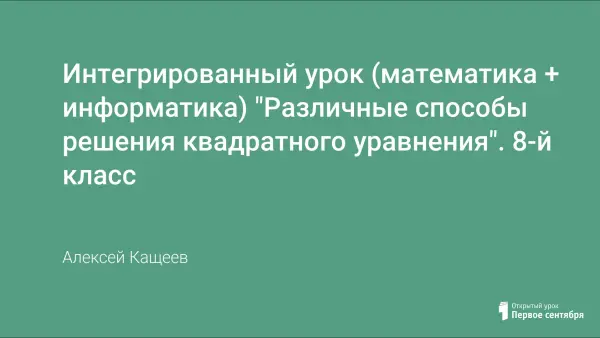 Интегрированный урок (математика + информатика) "Различные способы решения квадратного уравнения". 8-й класс