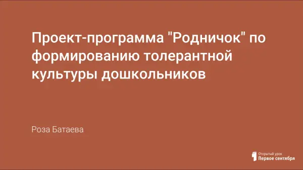 Цель проекта: формирование основ толерантной культуры личности дошкольника, педагога и родителя; именно в дошкольном возрасте складываются основные этические инстанции, оформляются и укрепляются индивидуальные варианты общественного отношения к себе и другому.
