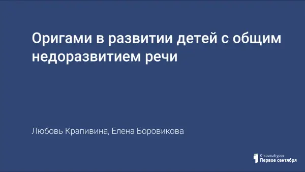 Оригами в развитии детей с общим недоразвитием речи