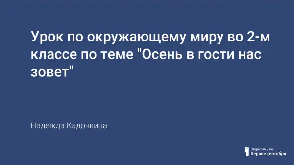 Дать учащимся представление о характерных признаках осени в неживой природе; расширить знания детей об осенних изменениях в жизни растений, в жизни насекомых и птиц, показать их связь с неживой природой; воспитание положительного восприятия окружающего мира и человека через слушание музыки и художественный вкус.