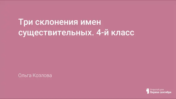 Урок русского языка в 4-м классе (УМК «Школа России». Учебник Т.Г. Рамзаевой) призван дать понятие о трех склонениях имен существительных в единственном числе, научить распознавать три типа склонения по окончанию и роду, развивать зрительную и слуховую память, концентрацию и объем внимания, обогащать словарный запас детей. Урок построен в соответствии с требованиями к проблемному уроку с использованием технологии системно-деятельностного подхода, технологии критического мышления.