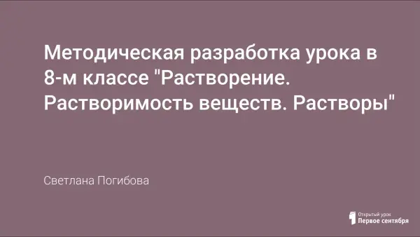 Так же использованы новые подходы к пониманию, что такое растворение.