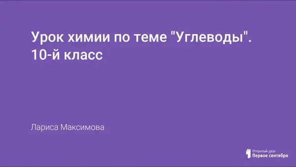 Конспект урока органической химии в 10-м классе. Тема рассчитана на два учебных часа, предполагает групповую работу учащихся с литературой, работу в группе по оформлению опорного плаката, самостоятельную работу учащихся по заполнению сводной таблицы. В ходе работы учащиеся знакомятся с классификацией углеводов, их основными представителями; свойствами и особенностями строения углеводов, биологической ролью, применением; выявляют связь между составом и строением веществ, их свойствами и функциям.