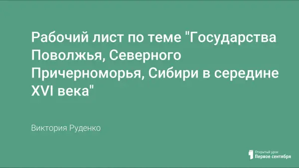 Представлен рабочий лист по истории России. Тема: "Государства Поволжья, Северного Причерноморья, Сибири в середине XVI в.".