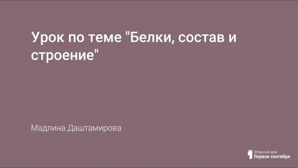 На уроке учащиеся изучают особенности строения молекул белков, учатся определять взаимосвязь строения и функций белков в клетке, продолжают развитие умения сравнивать состав и строение различных органических соединений.