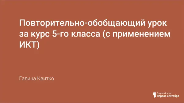 Повторительно-обобщающий урок в 5-м классе составлен учётом здоровья сбережения учащихся. На различных этапах урока, одна форма работы сменяем другую, что не позволяет учащимся уйти от участия в уроке. Различные виды работы: самостоятельная, графический диктант с проверкой, логические задачи, устная работа, групповая работа подобраны так, что позволяют не только обобщить пройденный материал, но и расширить кругозор учащихся и воспитывать интерес к предмету.
