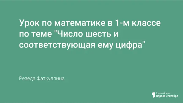 Урок разработан в соответствии с технологией развивающего обучения Л.В. Занкова. Этот урок предлагается провести в адаптационный период в 1-м классе в виде путешествия по стране математических знаний. В форме игры учащиеся знакомятся с числом 6, учатся правильно писать соответствующую цифру, развивают воображение, память, мышление.