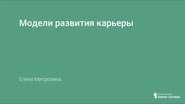 На этапе завершения школьного обучения необходима более глубокая личностная работа, направленная на построение образа профессионального будущего – «Проекта карьеры». Автор выделяет семь моделей развития карьеры: субъектную, развивающую, реалистичную, творческую, индивидуалистически ориентированную, пассивно рефлексивную и фиксированную.