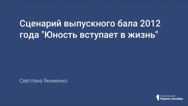 Выпускной вечер – одно из самых ярких и незабываемых событий в жизни выпускников школы, поставлена цель: сделать вечер незабываемым, душевным и теплым; приковать внимание в первую очередь к выпускникам, особенно к медалистам и отличникам; сценарий выстроен в виде церемонии "Юность вступает в жизнь" с вручением наград за победы в номинациях; в сценарии номинированы медалисты, классные руководители, учителя-предметники, начальных классов, родители.