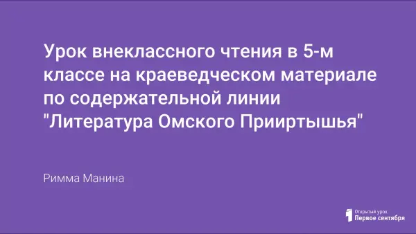 Урок призван формировать у учащихся целостное представление о литературе родного края как части отечественной и мировой художественной литературы и неотъемлемой составляющей культуры Омского Прииртышья, интерес к чтению и непосредственному восприятию литературы родного края.
