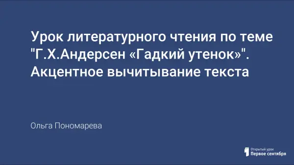 Урок литературного чтения в 4-м классе по системе развивающего обучения Д.Б.Эльконина – В.В.Давыдова, программа Г.Н.Кудиной, З.Н.Новлянской – ставит целью учить младших школьников бегло, сознательно и правильно читать, работать с книгой, а также расширить знания детей о жизни и творчестве Г.Х.Андерсена.