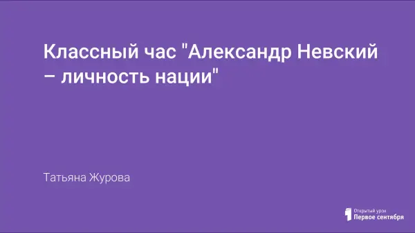 Основная цель классного часа - знакомство с огромным вкладом Александра Невского в историю Отечества, формирование у учащихся духовно-нравственных ценностей, патриотизма, гражданственности, воспитание в подрастающем поколении уважения к родной стране, ее историческим корням.