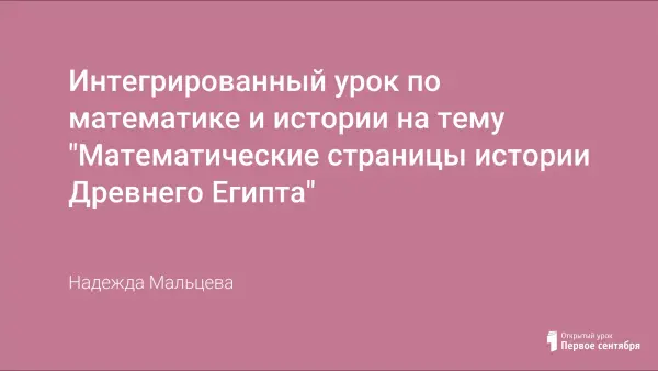 История Древнего мира интересна и далека от современного поколения детей, а математика часто воспринимается как предмет, далекий от повседневной жизни. Интегрированный урок математики и истории показывает пятиклассникам, как и для чего развивались математические знания.