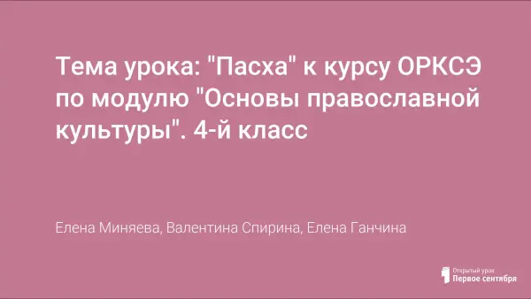 Тема урока: "Пасха" к курсу ОРКСЭ по модулю "Основы православной культуры". 4-й класс