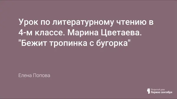 Важнейшими целями урока являются развитие невербальных средств выразительности устной речи, воображения, наблюдательности; обучение пониманию образности, емкости и красоты поэтического слова М.Цветаевой; воспитание любви к своей малой родине.