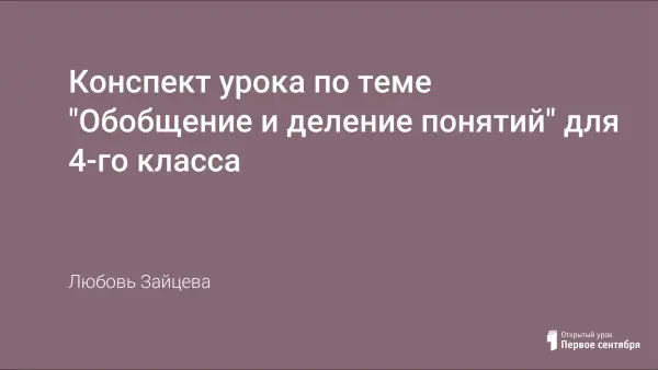 Цель урока - сформировать представление о возможности и принципах осуществления мыслительных действий с понятиями (деления и обобщения). Весь урок построен таким образом, что учитель, с помощью наводящих вопросов, приводит учеников к возможным вариантам работы с понятиями.