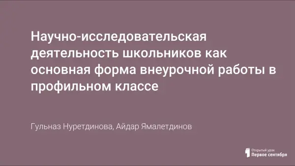 Научно-исследовательская деятельность школьников как основная форма внеурочной работы в профильном классе