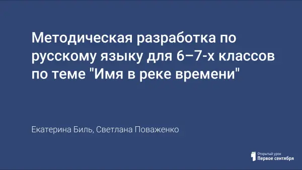 Методическая разработка по русскому языку для 6–7-х классов по теме "Имя в реке времени"