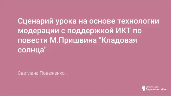 Урок проводится после изучения произведения М.Пришвина "Кладовая солнца". Вопросы, включенные в задания для учеников, носят репродуктивный характер, что позволяет учителю оценить знание учащимися текста произведения. Эффективные методы обучения способствуют повышению интереса школьников к уроку, усиливают мотивацию прочтения текста.