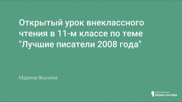 На российской литературной сцене наступило затишье: премиальный сезон 2008 года завершился. Подведены итоги продаж, розданы главные премии, писатели получили своё, а читатели отправились в магазины... Учебник литературы XXI века еще не написан, и мы вместе сейчас будем создавать его страницы… Представляем 10 номинаций и десять писателей, их произведения.
