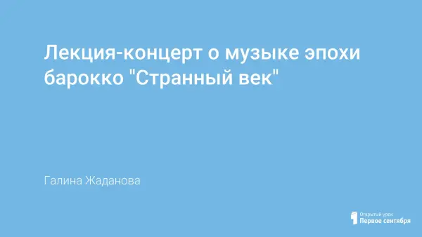Лекция-концерт о музыке эпохи барокко "Странный век"