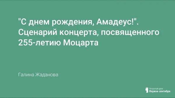 Данное мероприятие предназначено для учащихся общеобразовательных, музыкальных школ, школ искусств. В ходе концерта слушатели знакомятся с жизнью и творчеством великого австрийского композитора – Вольфганга Амадея Моцарта.