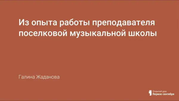 В статье преподаватель по классу фортепиано детской музыкальной школы рассказывает о специфике работы в маленьком таежном поселке, в условиях удаленности от культурных центров и "большой земли". Делится опытом учебной, воспитательной и просветительской деятельности.
