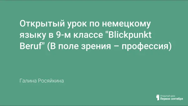Данный урок – это обобщающее повторение темы “Die Zukunft beginnt schon jetzt. Wie steht's mit der Berufswahl?” в 9-м классе. За основу взят материал о возможностях получения профессионального образования и профессиональных предпочтениях молодежи Германии и России, изученный по учебнику Бим И.Л.