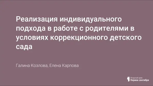 Реализация индивидуального подхода в работе с родителями в условиях коррекционного детского сада