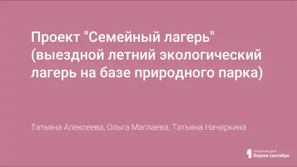 Проект "Семейный лагерь" (выездной летний экологический лагерь на базе природного парка)