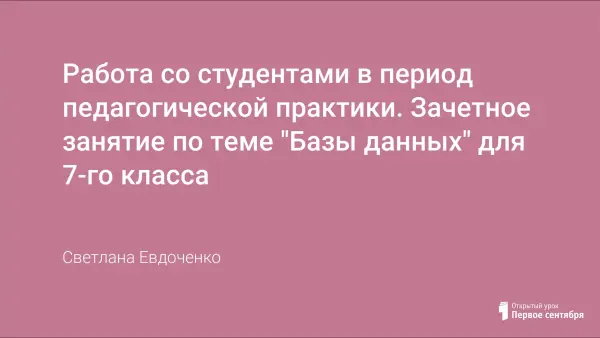 В статье описывается работа со студентами в период педагогической практики. Работа студентов была организованна так, что им удалось на высоком уровне подготовить и провести открытое мероприятие – зачет по теме «Базы данных» в форме учебной игры в 7-м классе.