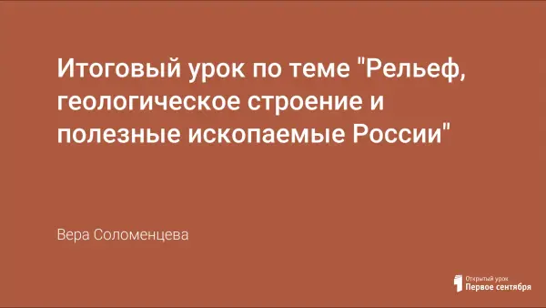 Урок проверяет умение учащихся показывать по карте основные формы рельефа России, определяет понимание взаимосвязи между тектоническими структурами и формами рельефа.