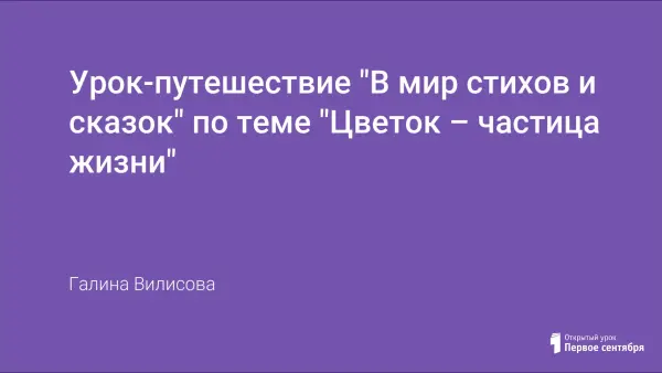 Урок проходит в виде путешествия в мир русских сказок и стихов по теме "Цветок - частичка жизни" для учащихся 6-го класса. На этом уроке в интересной форме путешествия проводится обобщение знаний учащихся о сложных процессах опыления, оплодотворения покрытосеменных растений, строении цветка и соцветий.